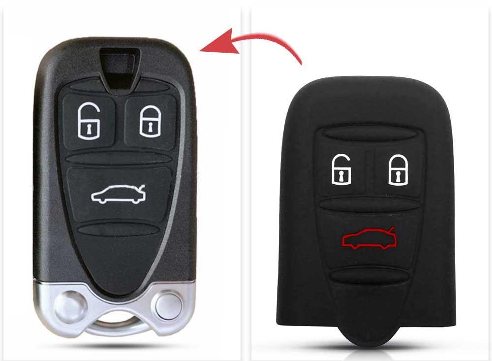 Vysokokvalitný silikónový obal na kľúč Alfa Romeo s 3 tlačidlami, dostupný v čiernej alebo červenej farbe. Ideálne riešenie na každodennú ochranu vášho kľúča, pričom zároveň dodá štýlový a vkusný vzhľad, aby ste mohli vyjadriť svoj vlastný štýl.