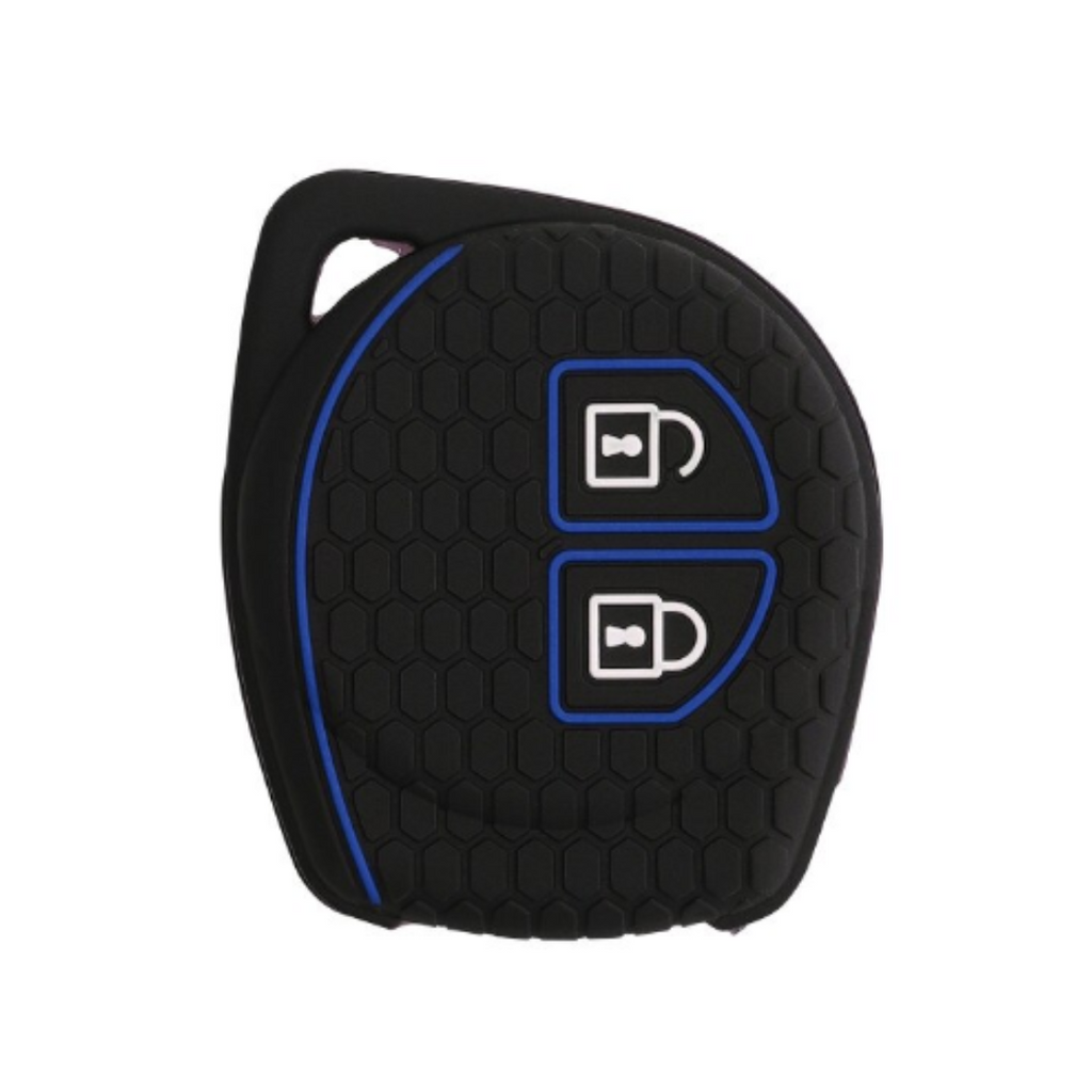 Čierny-modrý, 2-tlačidlový kľúč Suzuki silikónové púzdro. Ideálne riešenie na každodennú ochranu vášho kľúča, pričom zabezpečuje štýlový a vkusný vzhľad, aby ste mohli vyjadriť svoj osobný štýl.